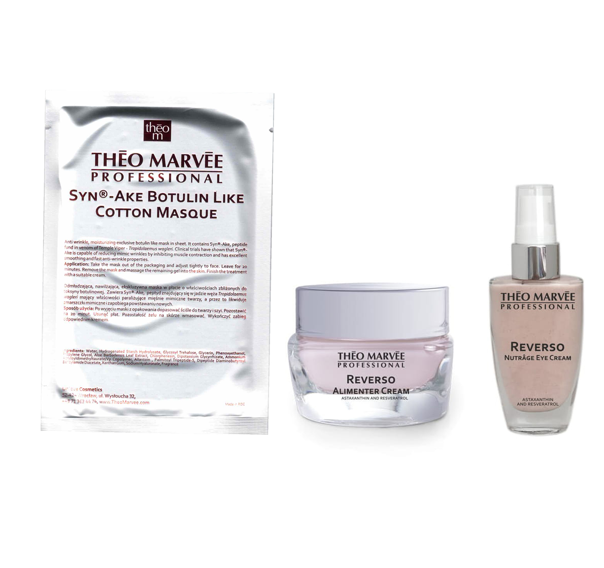 Zestaw do cery, suchej, cienkiej krem do twarzy i pod oczy, maska w płacie REVERSO Theo Marvee
